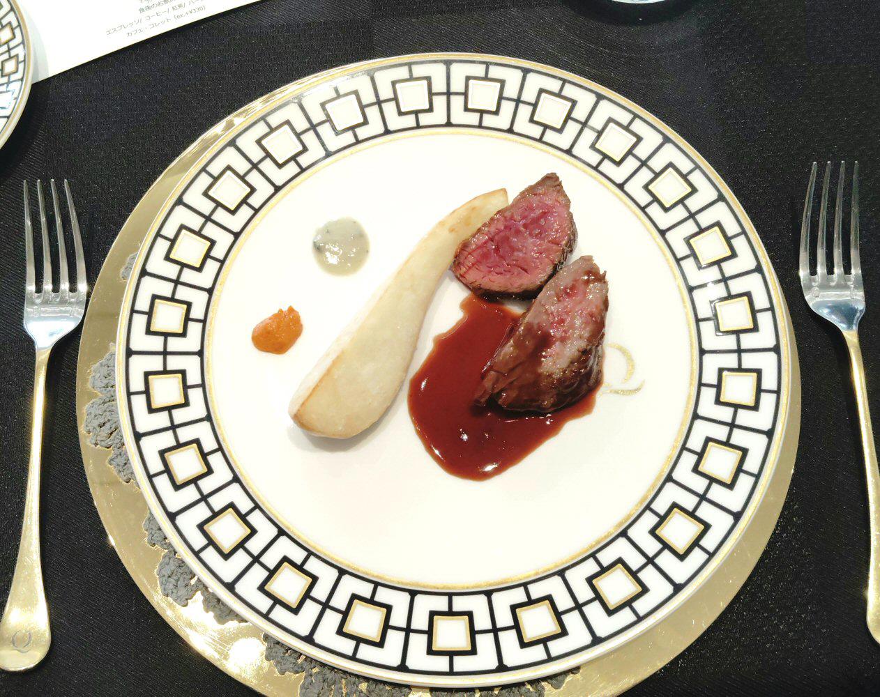 肉料理:高原黒毛和牛(ヒレとイチボ)・海老芋・ゴルゴンゾーラソース