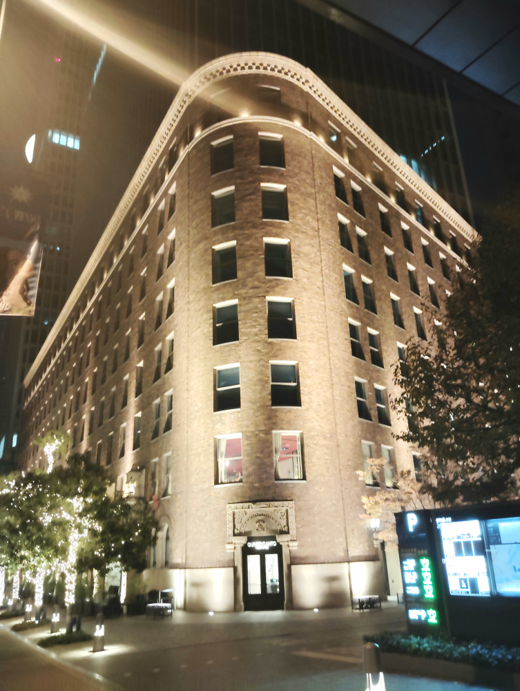 外観を撮影したのは夜で、内観を撮影したのは昼だったからです。)