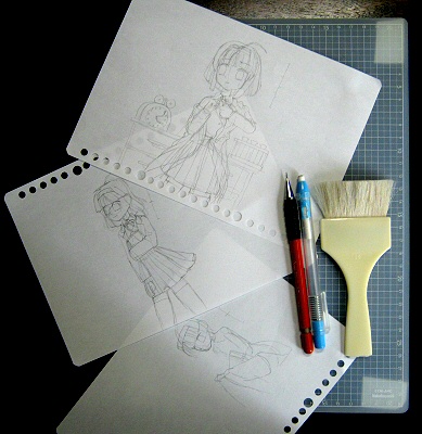 →一枚を本命として選び、もちっと丁寧に書き込んで下絵へ。