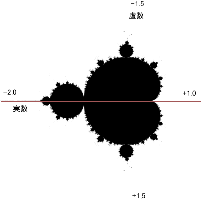 別の書き方をすればzn+1= zn2+c (z∞が発散すれば白、発散しなければ黒。)